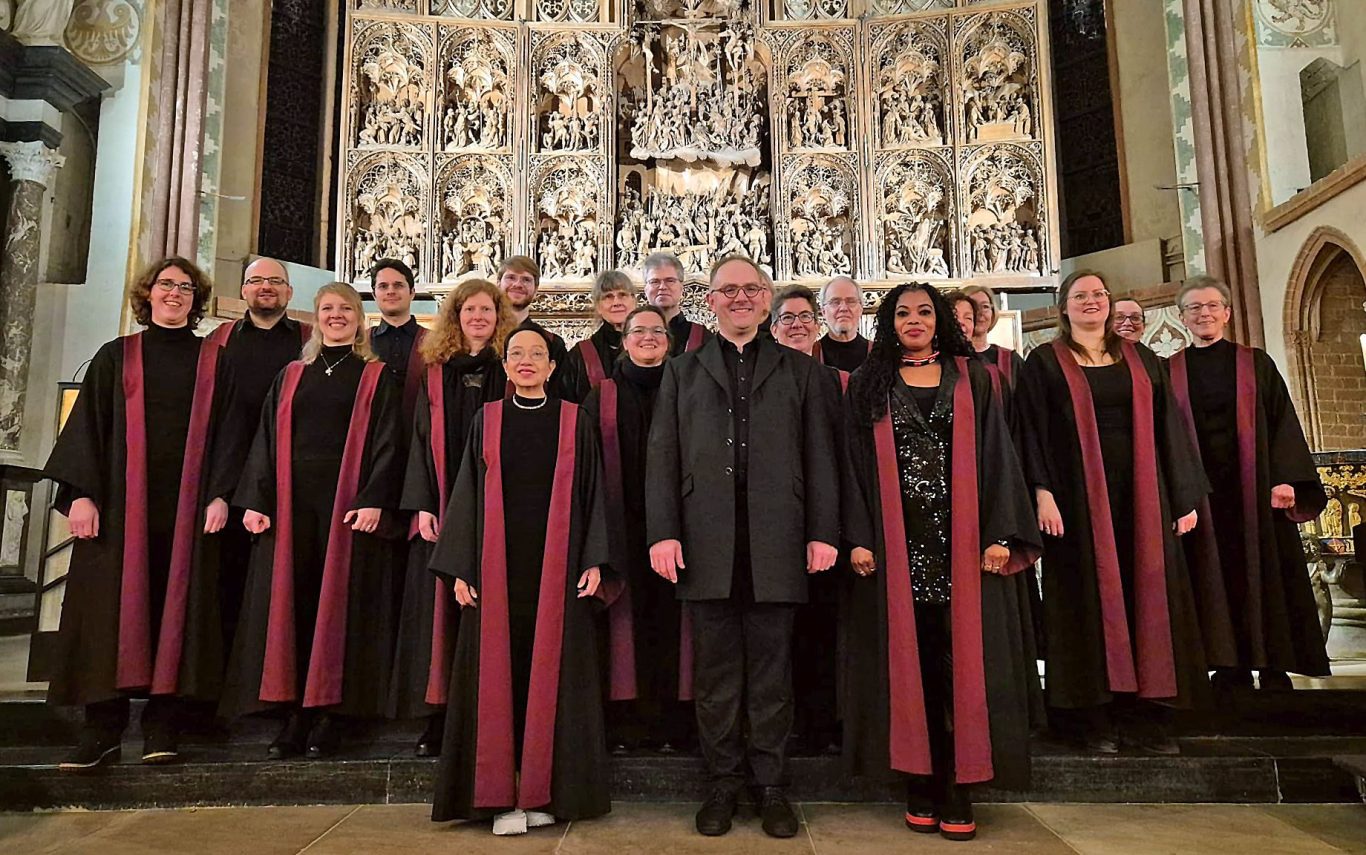 Wir sind etwa 25 Sängerinnen und Sänger mit viel Freude an Chormusik aus verschiedenen Epochen -